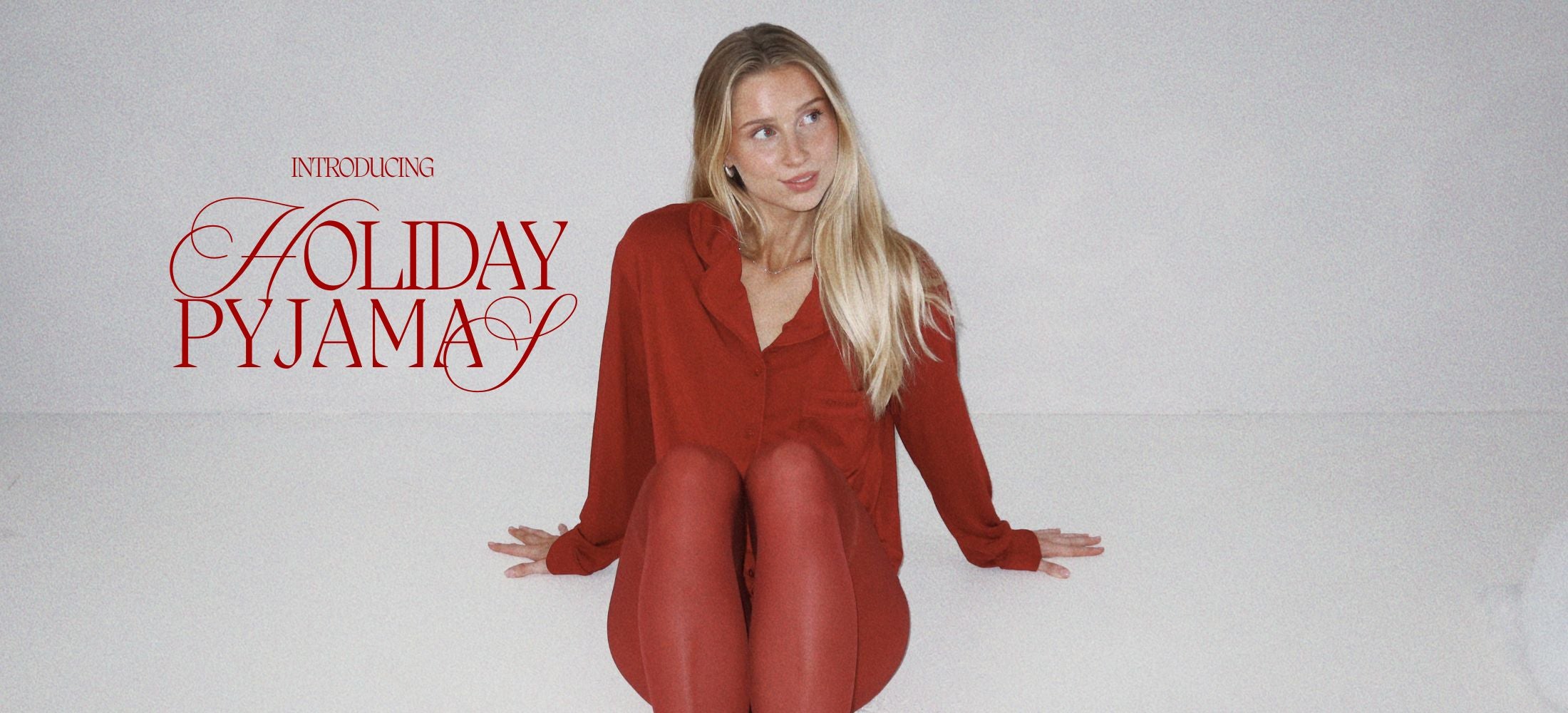our HOLIDAY PYJAMAS brings a new softness to the season. designed in a rich burgundy shade and crafted from silky, breathable modal, the collection is made for slow winter days and quiet moments you look forward to all year.
