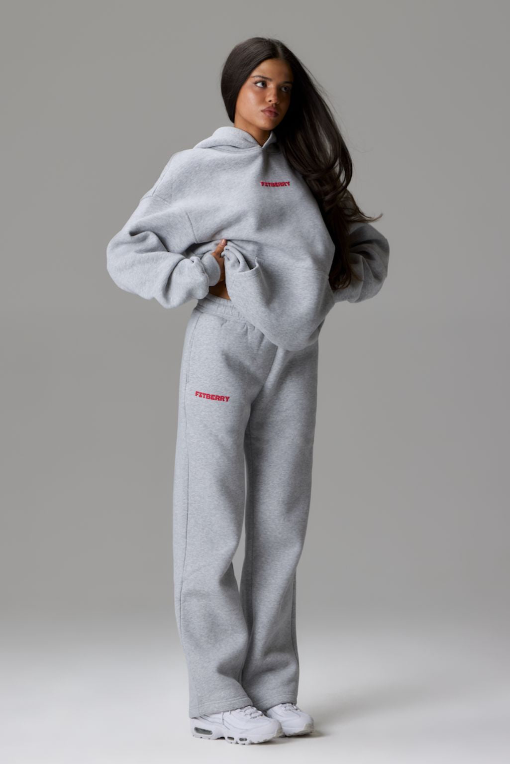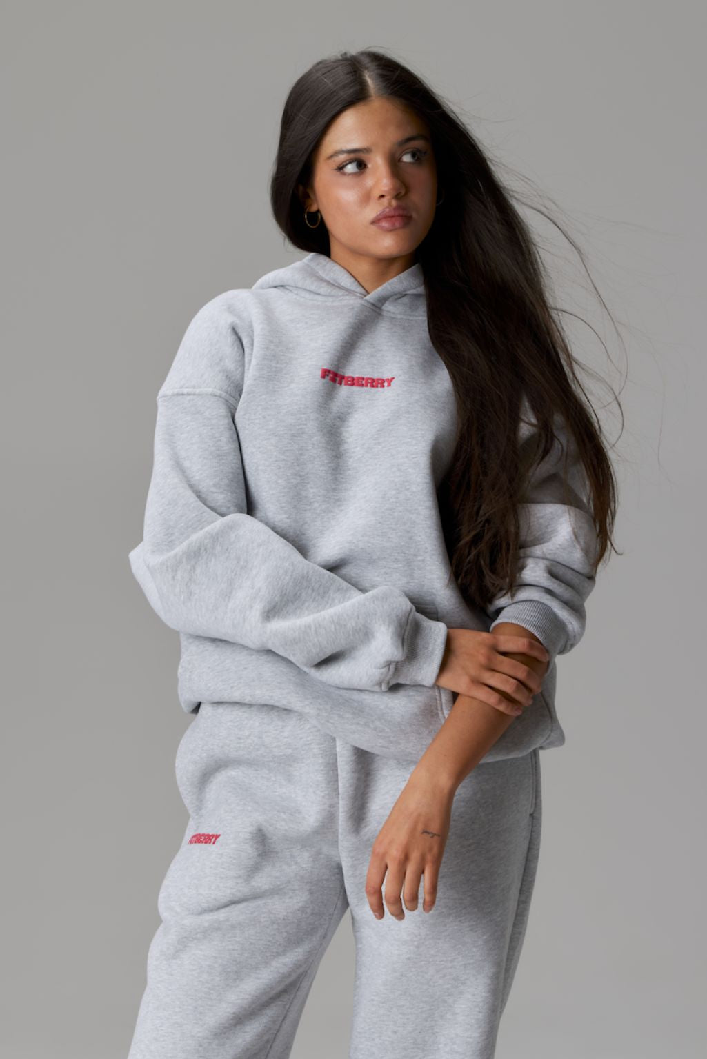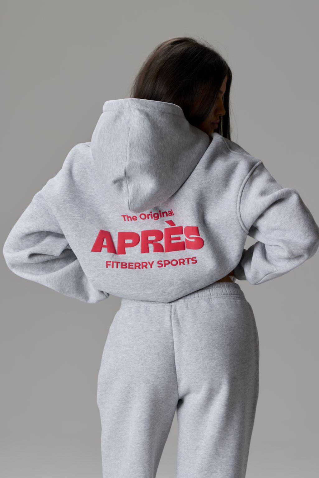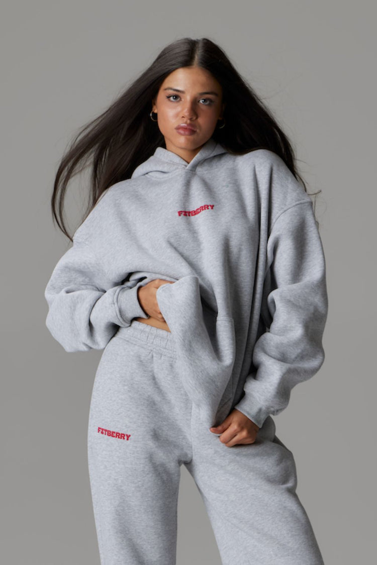 FITBERRY® APRÈS OVERSIZED HOODIE. An oversized hoodie crafted from premium high-quality cotton fabric. The hoodie has a soft fleece interior, dropped shoulders, a cozy hood, front pocket and ribbed details on the sleeves and waist. Featuring our signature Fitberry Après print to front and back.