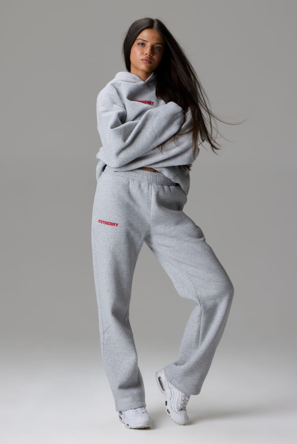 FITBERRY® APRÈS STRAIGHT LEG JOGGERS. Mid-waist joggers with straight leg and the perfect fit. Crafted from a premium high-quality cotton fabric. The straight joggers have soft fleece interior, deep pockets and a hidden adjustable drawstring waist. Featuring our Fitberry Après print to front.