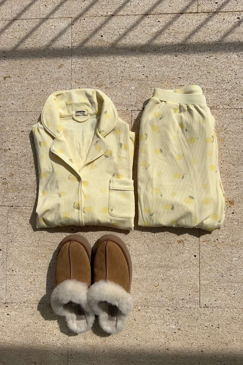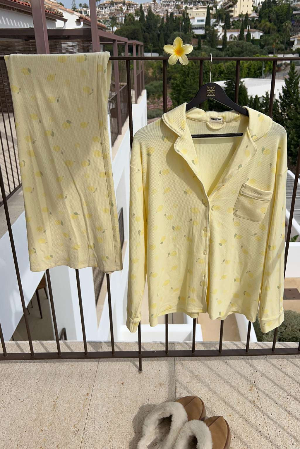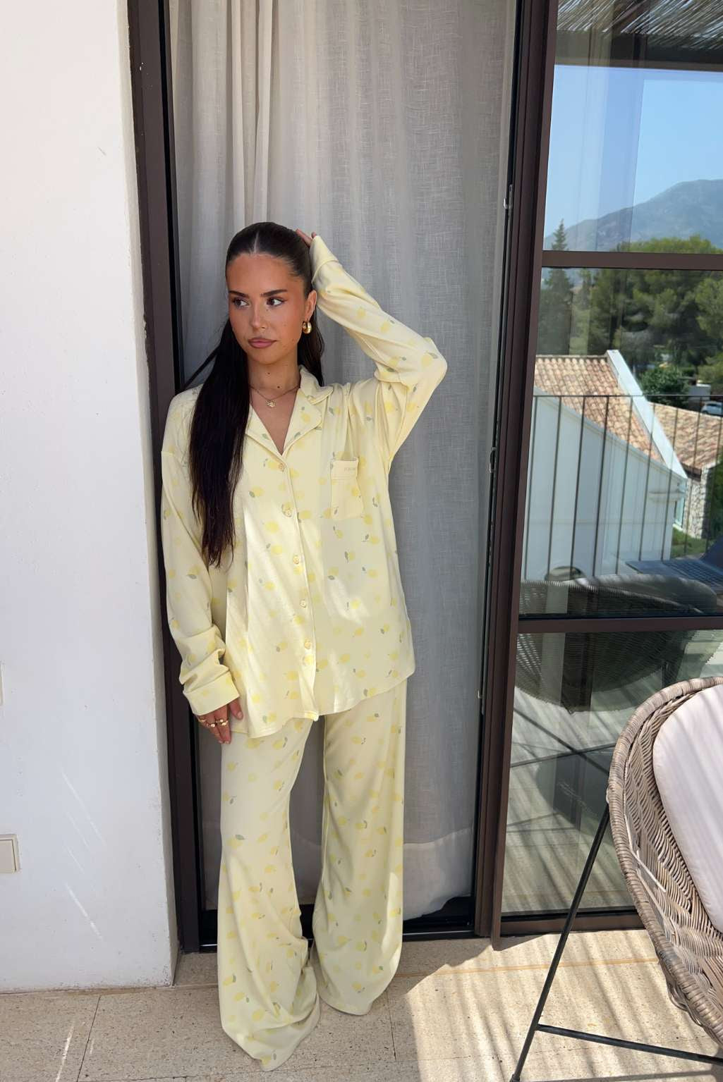 FITBERRY® CITRUS BLOOM PYJAMAS PANTS. The softest butter yellow pyjamas pants featuring a delicate all-over citrus lemon print, wide leg, hidden elastic drawstring waist and deep pockets. Crafted from a silky, breathable modal rib with an oversized fit and gentle stretch. This set is perfect for slow mornings and golden hour evenings.