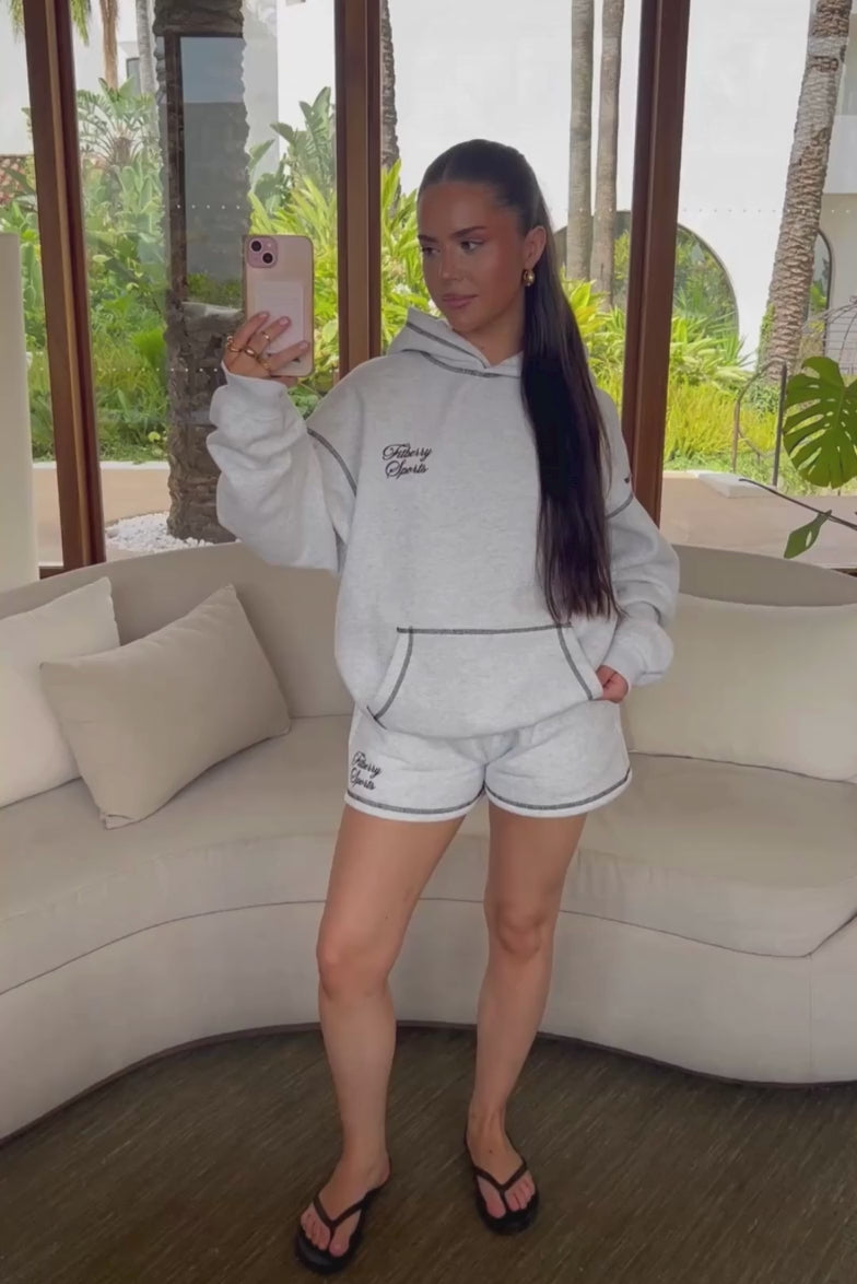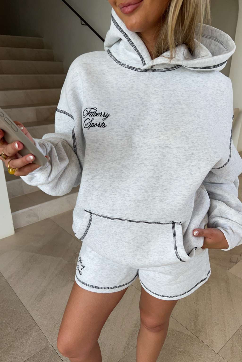 FITBERRY® CONTOUR OVERSIZED HOODIE. An oversized hoodie crafted from premium high-quality cotton fabric. Designed with a tonal seam detailing that adds structure and contrast to the silhouette. The hoodie has a soft fleece interior, dropped shoulders, a cozy hood, front pocket and ribbed details on the sleeves and waist. Finished with an embroidered Fitberry contour logo to front.
