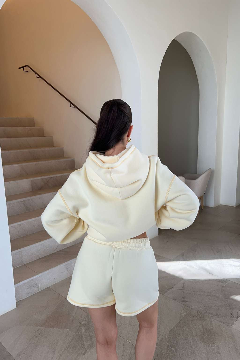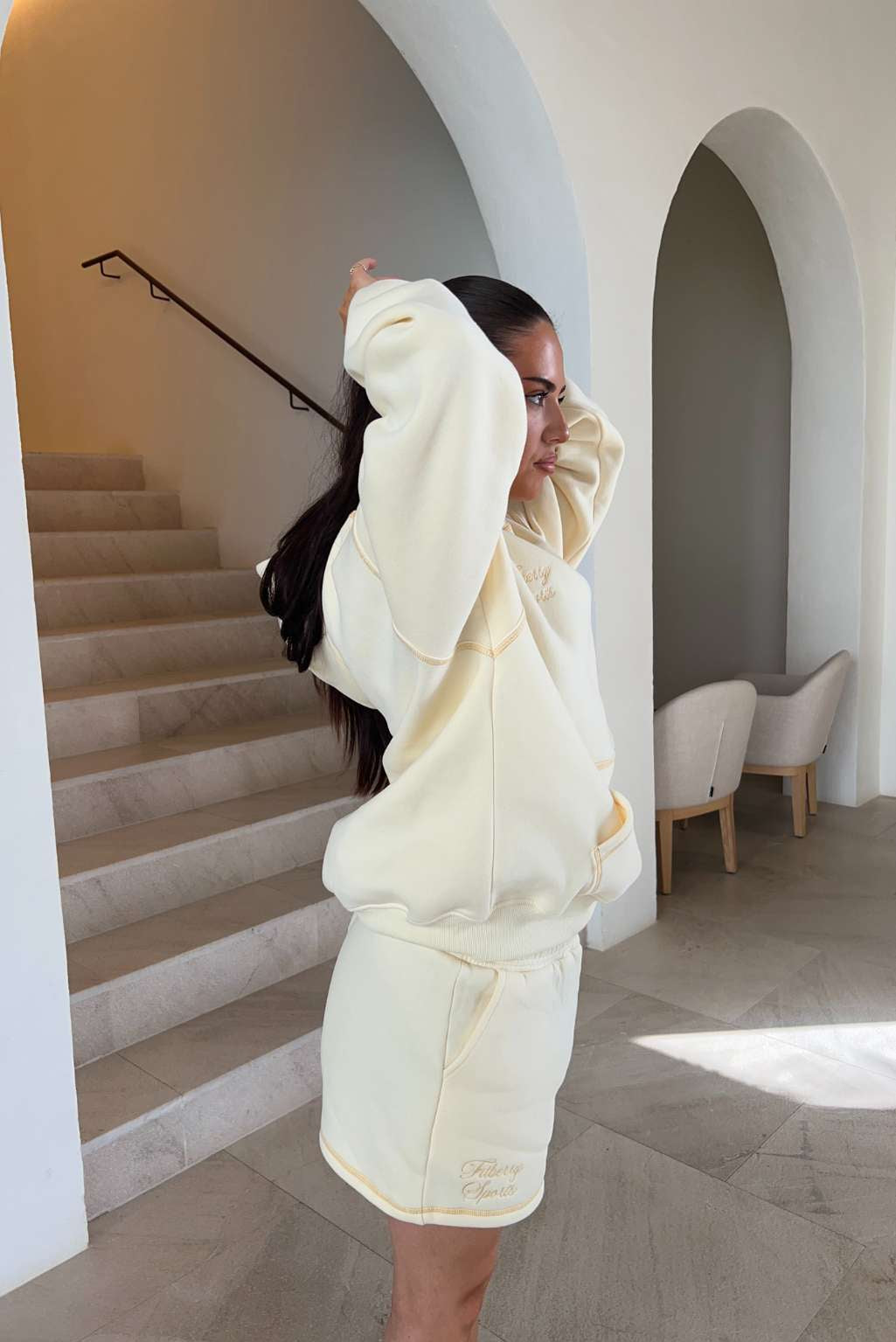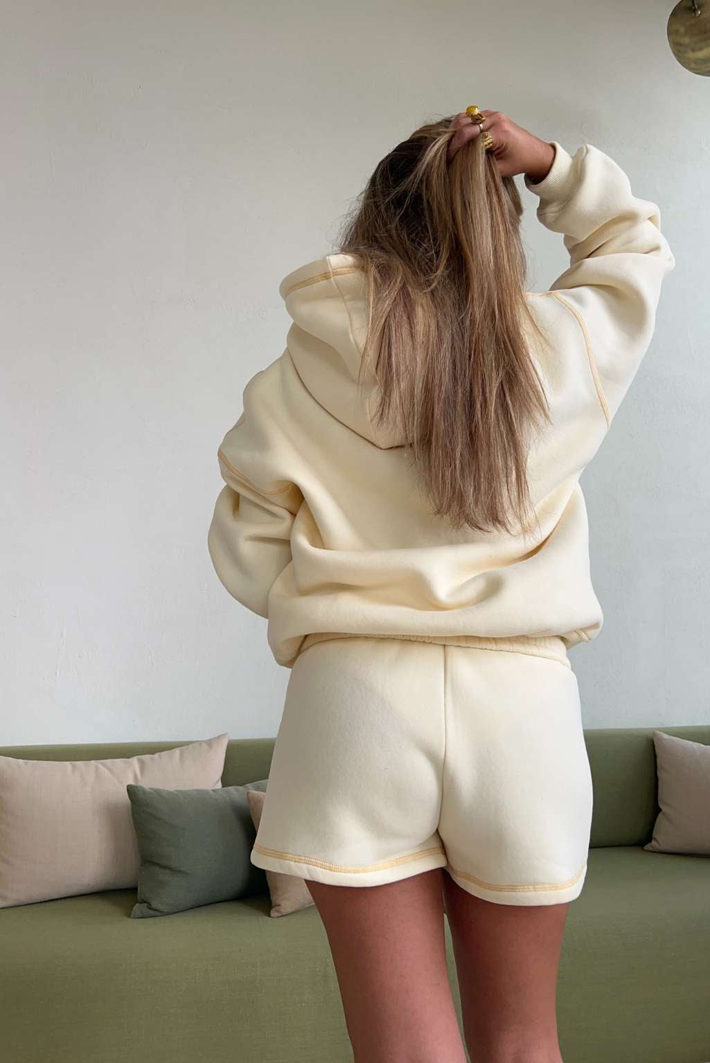 Model 1: Hanna is 160cm and wears a size S in hoodie and size XS in joggers / shorts.