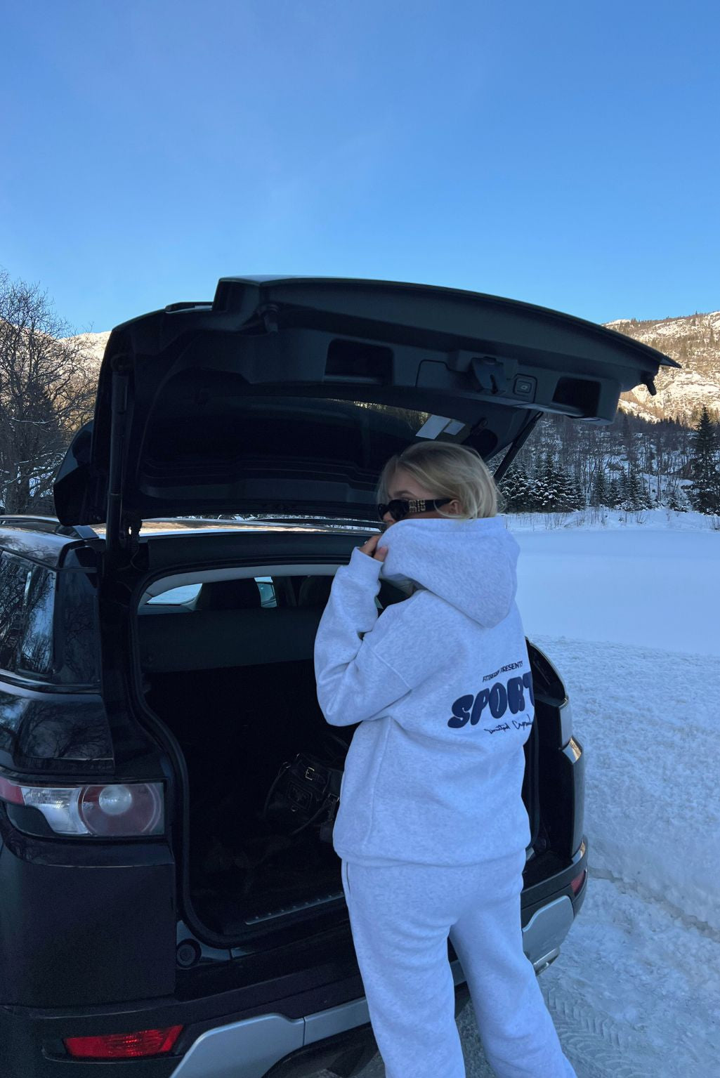 Frida Seemann is 180m and wears a size M in both hoodie and joggers.