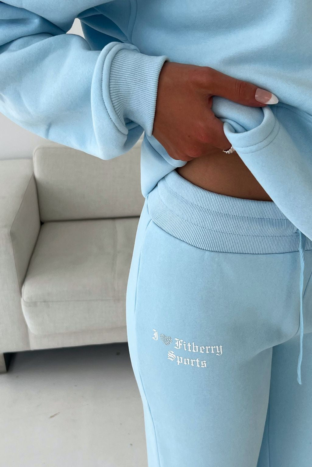 I ♥ FITBERRY® LOW WAIST FLARED JOGGERS. Joggers with a wide flared leg and a low waist cut. Crafted from a premium high-quality cotton fabric. The joggers have soft fleece interior, adjustable drawstring at waist and I ♥ FITBERRY print with handmade rhinestone heart.
