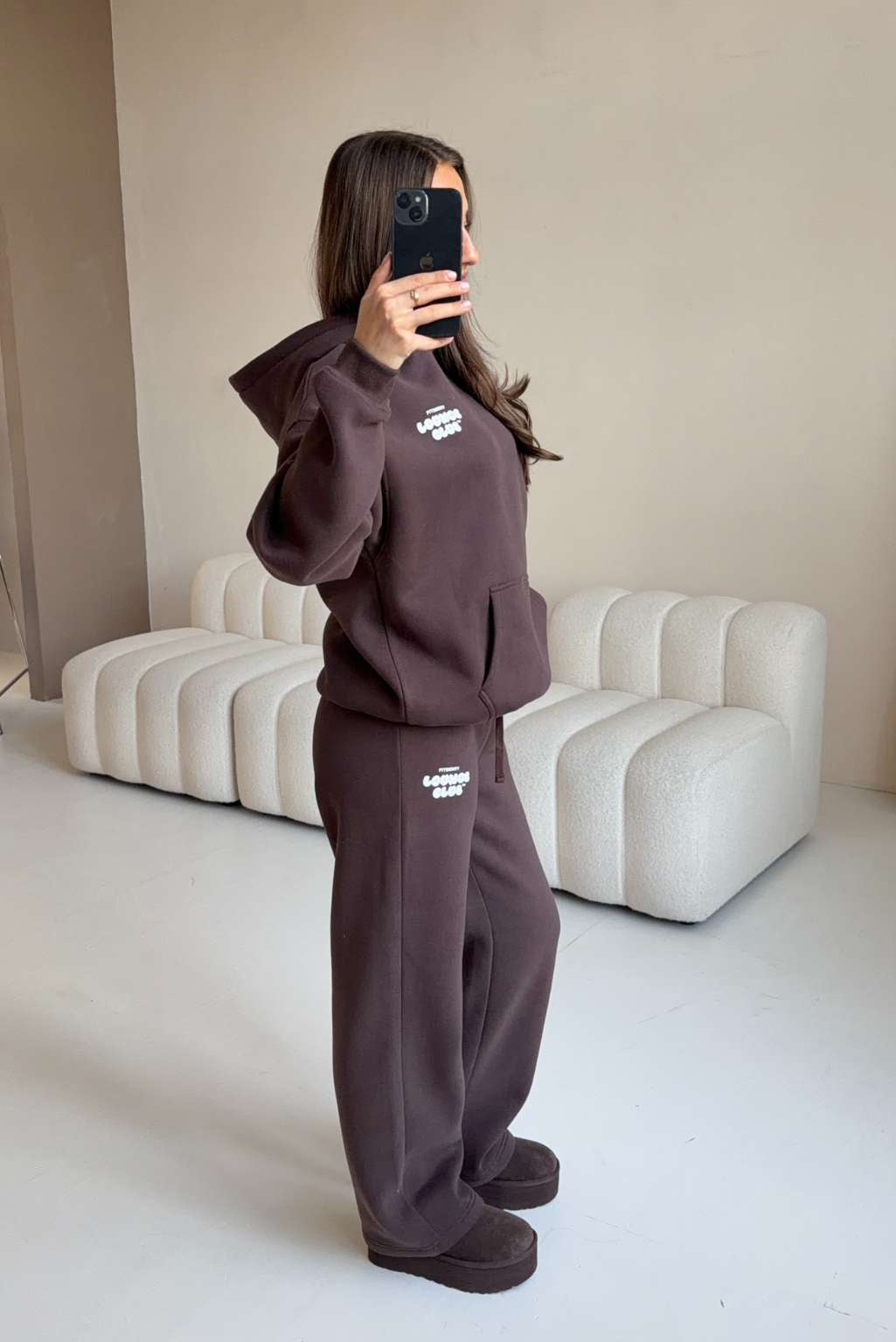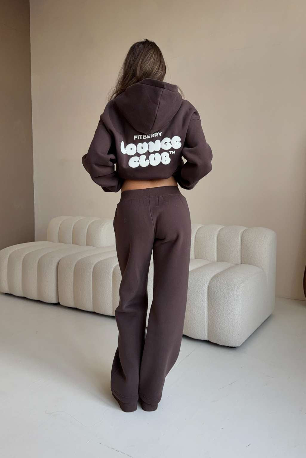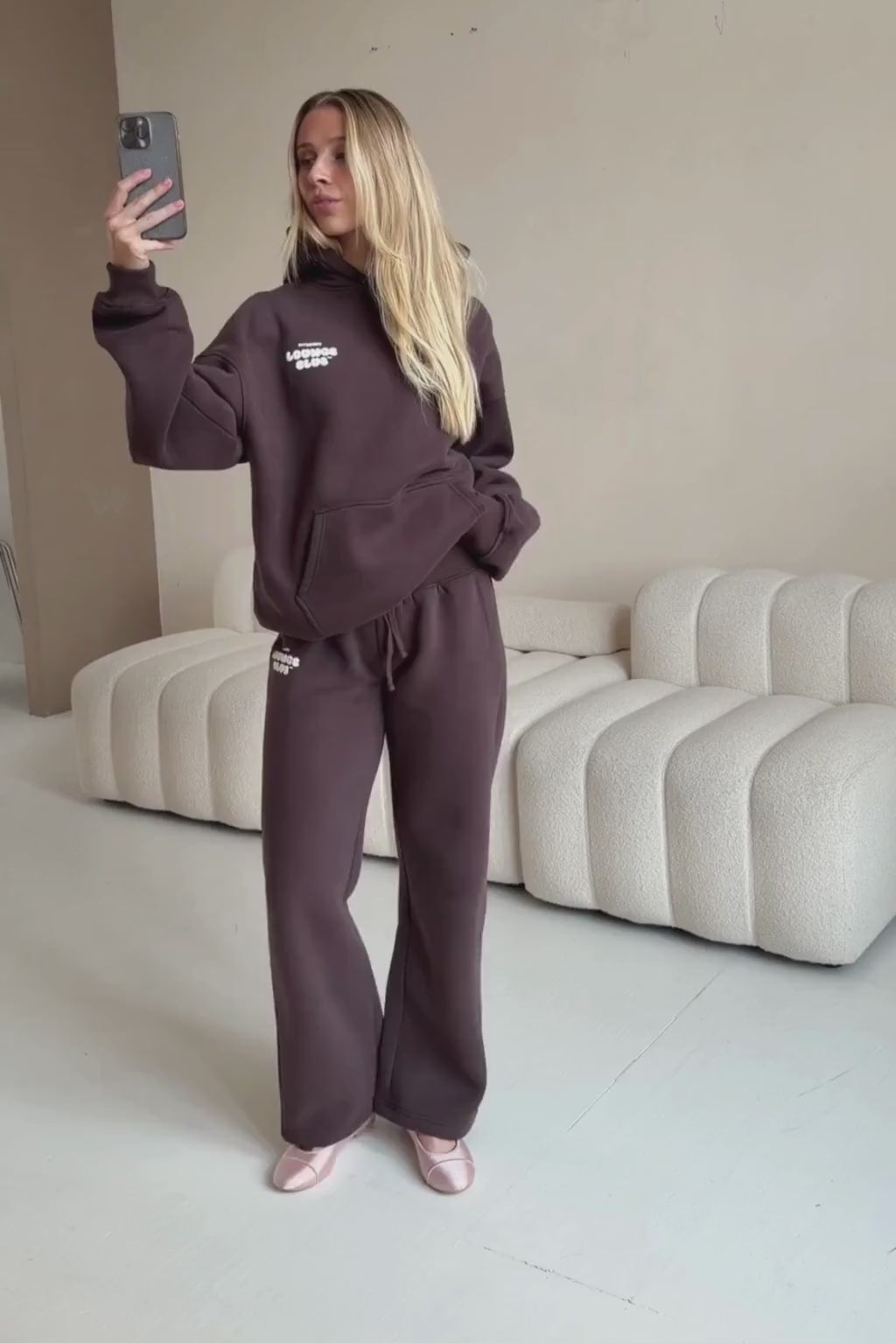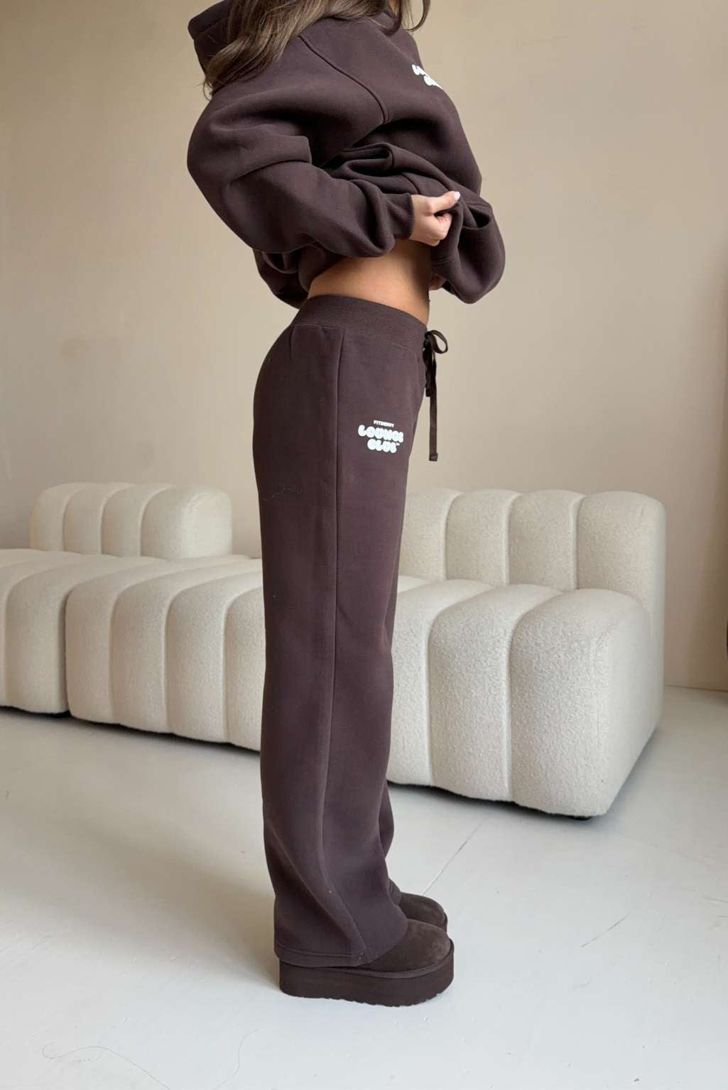 FITBERRY® LOUNGE CLUB FLARED LEG JOGGERS. Mid-waist joggers with a wide flared leg and the perfect fit. Crafted from a premium high-quality cotton fabric. The flared joggers have soft fleece interior, adjustable drawstring waist and our signature Fitberry Lounge Club print to front.