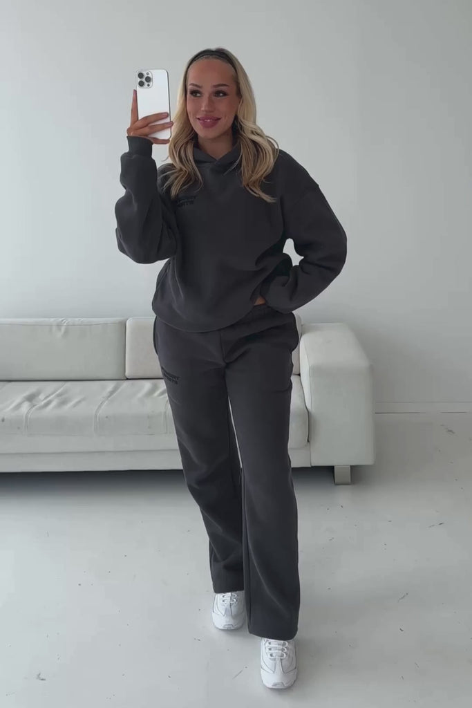 Model 1: Mia is 170cm and wears a size M in both hoodie and joggers.