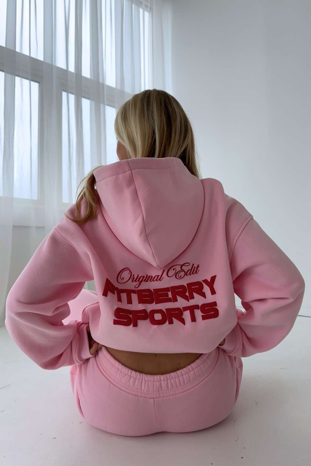 FITBERRY® ORIGINAL EDIT OVERSIZED HOODIE. An oversized hoodie crafted from premium high-quality cotton fabric. The hoodie has a soft fleece interior, dropped shoulders, a cozy hood and ribbed details on the sleeves and waist. Featuring Fitberry Original Edit print to front and back.
