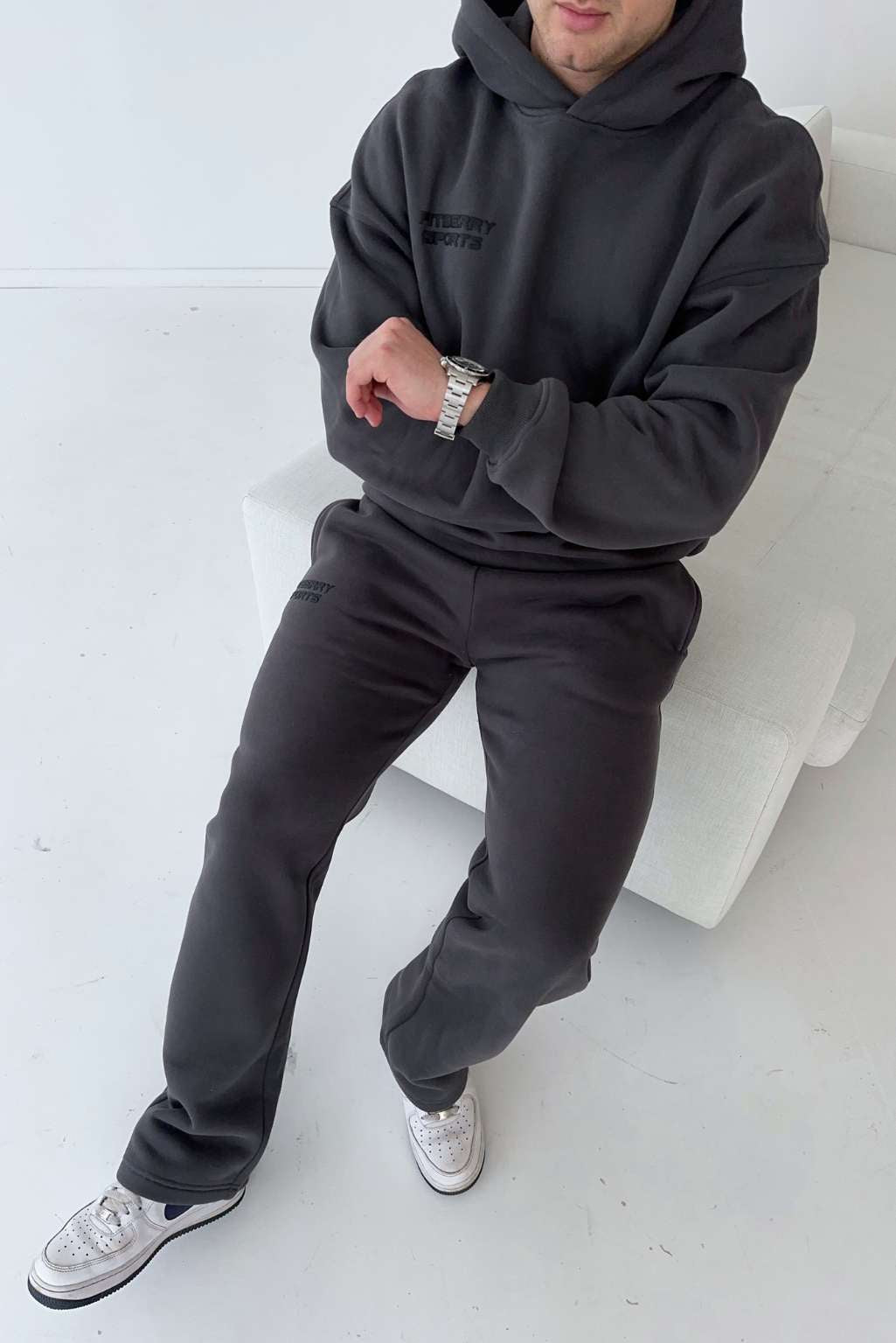 Model 4: Arnold is 180cm and wears a size L in both hoodie and joggers.