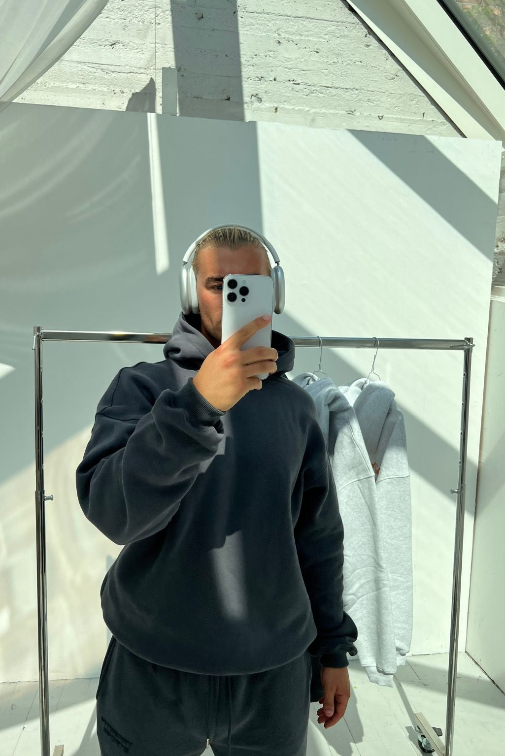 Model 2: Magnus is 186cm and wears a size L in both hoodie and joggers.