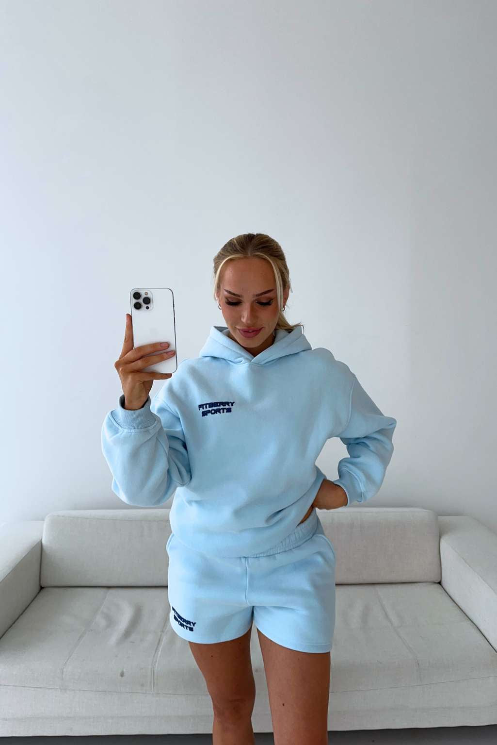 Model: Mia is 170cm and wears a size M in both hoodie and shorts.