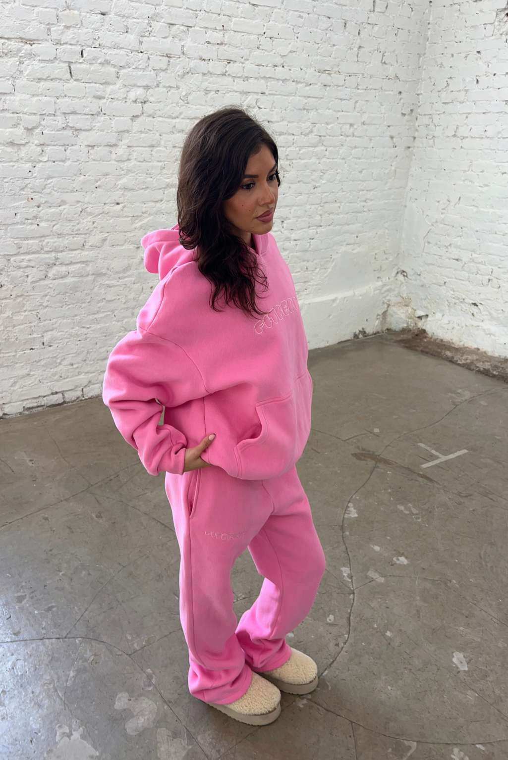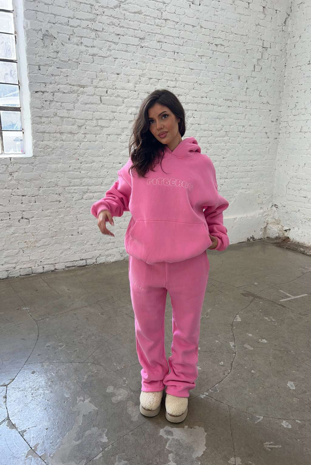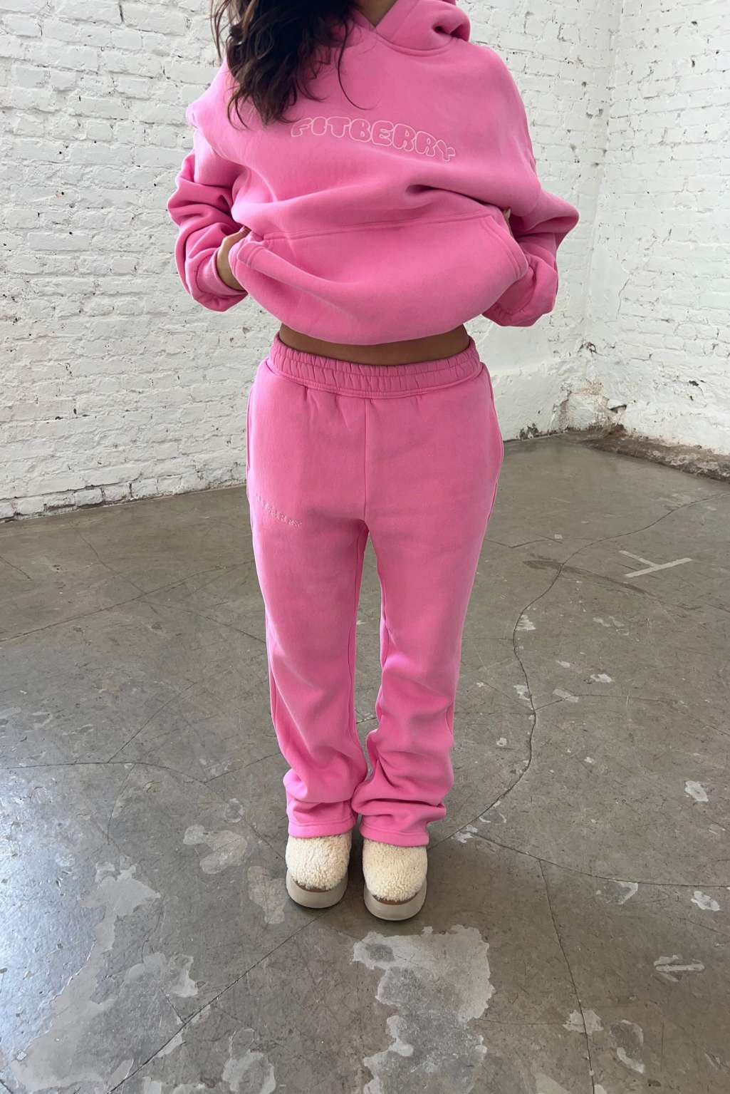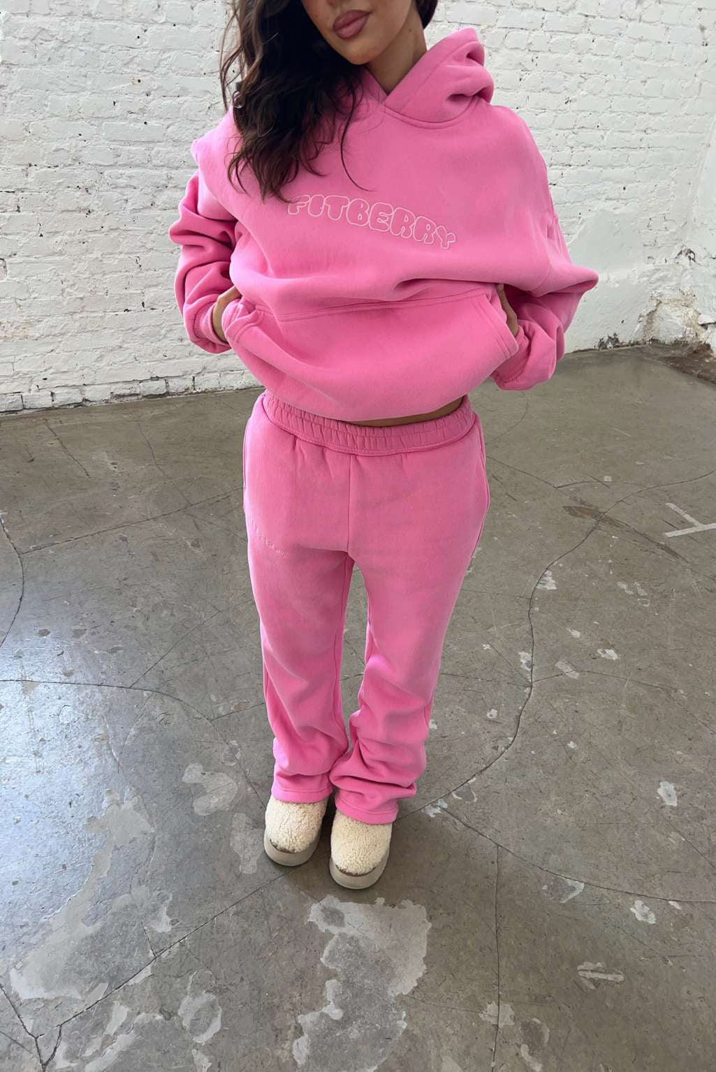 FITBERRY® PLUSHIE FLARED JOGGERS. Joggers with the perfect flared leg and an oversized fit. Crafted from a premium high-quality cotton fabric. The flared joggers have soft fleece interior, deep pockets and a hidden adjustable drawstring waist.