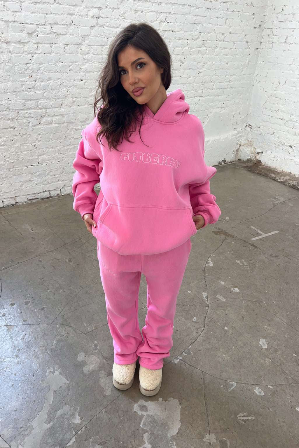 FITBERRY® PLUSHIE OVERSIZED HOODIE. A hoodie with an extra oversized fit for that baggy look. Crafted from a premium high-quality cotton fabric. The hoodie has a soft fleece interior, front pocket, dropped shoulders, a cozy hood and ribbed details on the sleeves and waist. Featuring Fitberry logo embroidery to front.