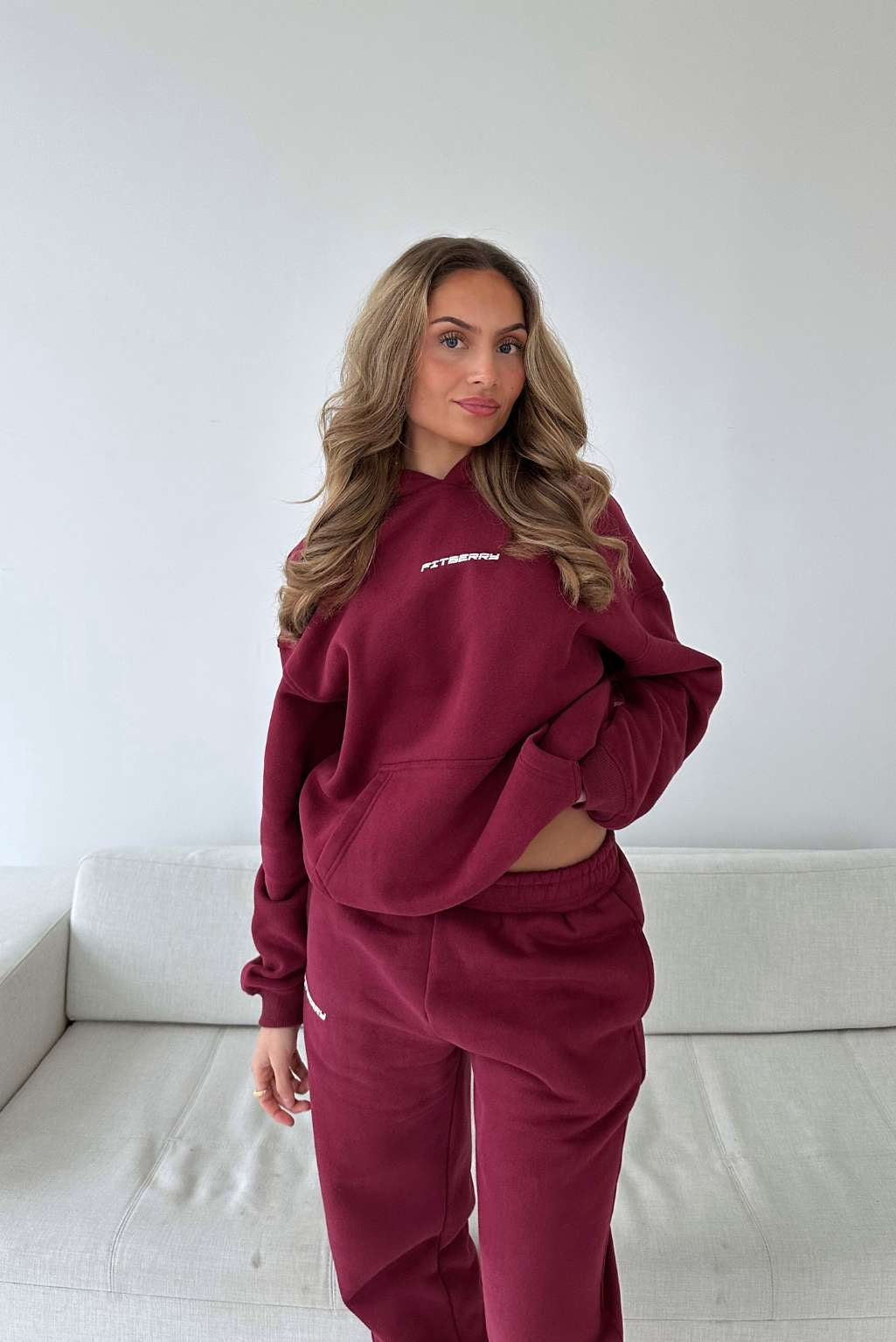 FITBERRY® SPORT SERIES OVERSIZED HOODIE. An oversized hoodie crafted from a premium high-quality cotton fabric. The hoodie has a soft fleece interior, dropped shoulders, a cozy hood, front pocket and ribbed details on the sleeves and waist. Featuring our Fitberry Sport Series print to front and back.