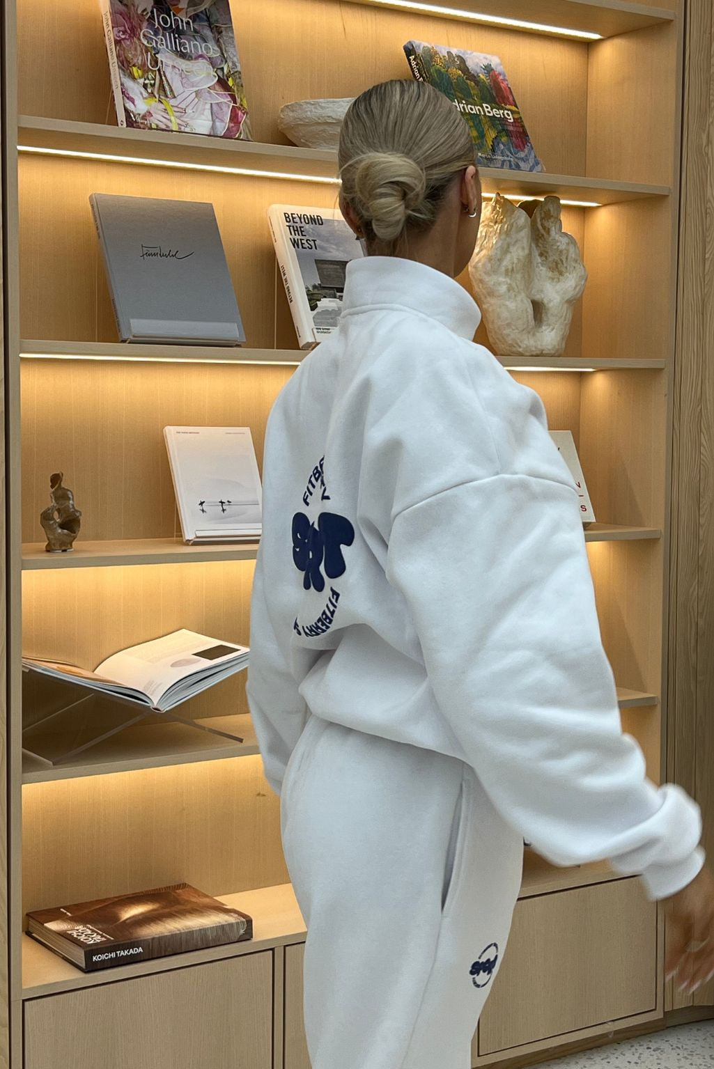FITBERRY® SPORT SOCIETY OVERSIZED HALF ZIP. A sweatshirt with half zip in front and the perfect oversized fit. Crafted from a premium high-quality cotton fabric. The half zip has soft fleece interior, dropped shoulders and ribbed details on the sleeves and waist. Featuring our signature Sport Society logo to front and back.