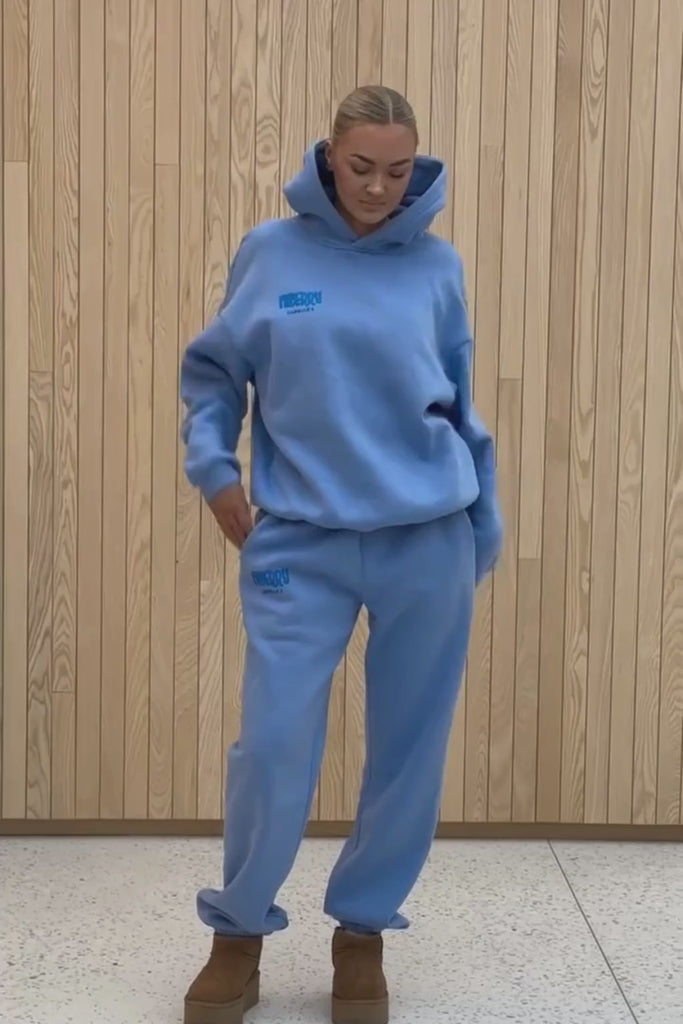 FITBERRY® SPORTS CLUB OVERSIZED HOODIE. An oversized hoodie crafted from a premium high-quality cotton fabric. The hoodie has a soft fleece interior, dropped shoulders, a cozy hood and ribbed details on the sleeves and waist. Featuring our signature Fitberry Sports Club Capsule 3 logo to front and back.
