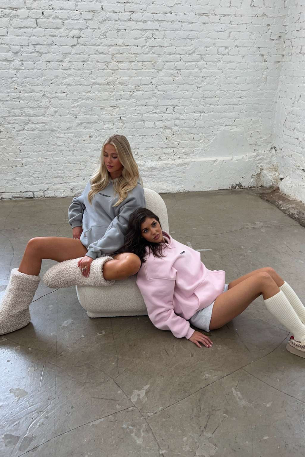 FITBERRY® SPORTS CLUB OVERSIZED HOODIE. An oversized hoodie crafted from premium high-quality cotton fabric. The hoodie has a soft fleece interior, dropped shoulders, a cozy hood, front pocket and ribbed details on the sleeves and waist. Featuring Fitberry Sports Club print to front and back.