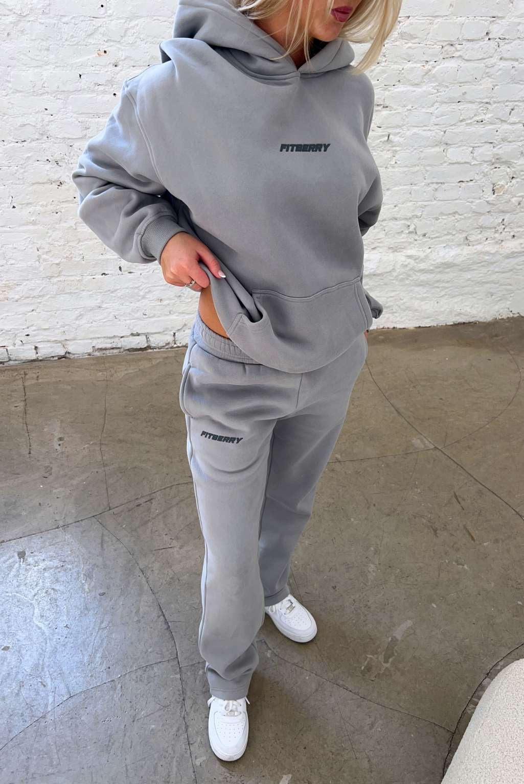 FITBERRY® SPORTS CLUB STRAIGHT LEG JOGGERS. Mid-waist joggers with straight leg and the perfect fit. Crafted from a premium high-quality cotton fabric. The straight joggers have soft fleece interior, deep pockets and a hidden adjustable drawstring waist. Featuring our Fitberry Sports Club print to front.