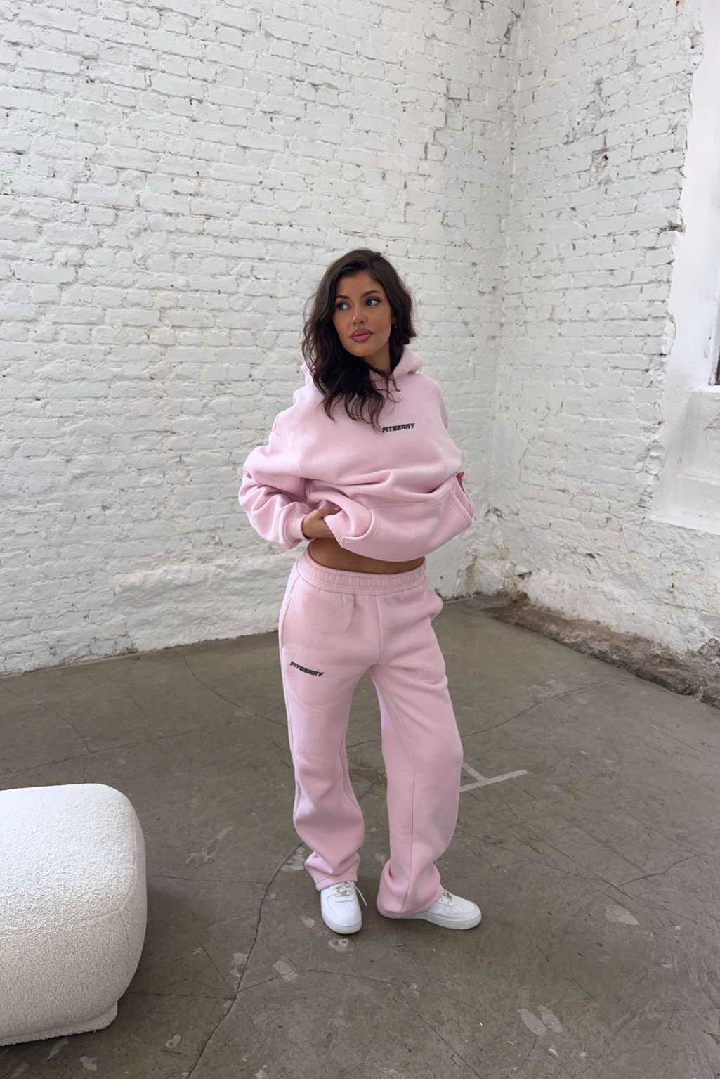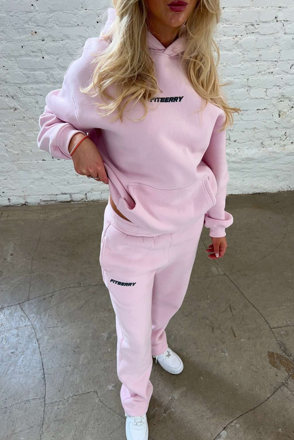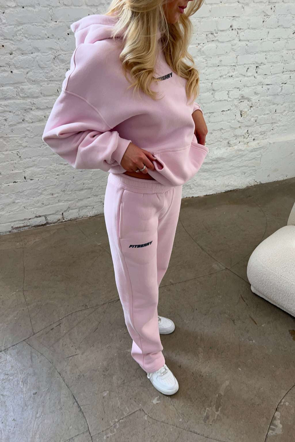 FITBERRY® SPORTS CLUB STRAIGHT LEG JOGGERS. Mid-waist joggers with straight leg and the perfect fit. Crafted from a premium high-quality cotton fabric. The straight joggers have soft fleece interior, deep pockets and a hidden adjustable drawstring waist. Featuring our Fitberry Sports Club print to front.