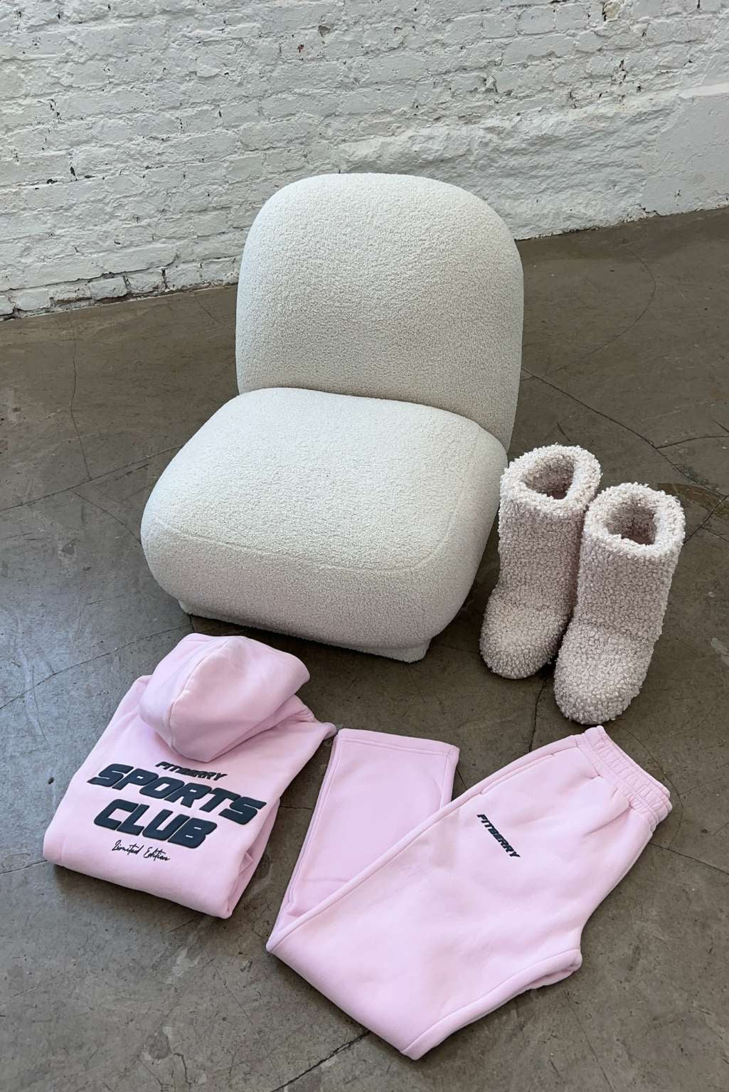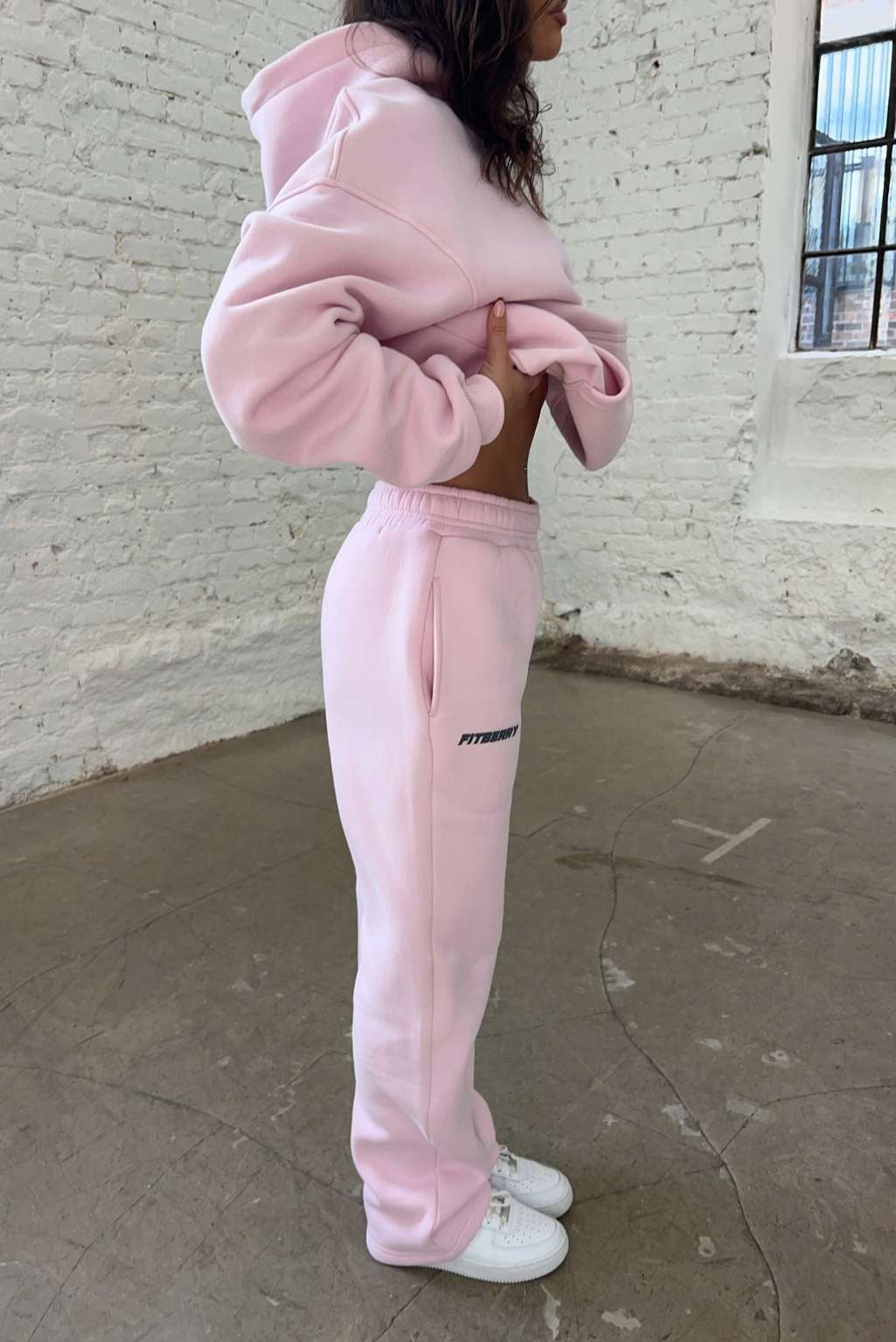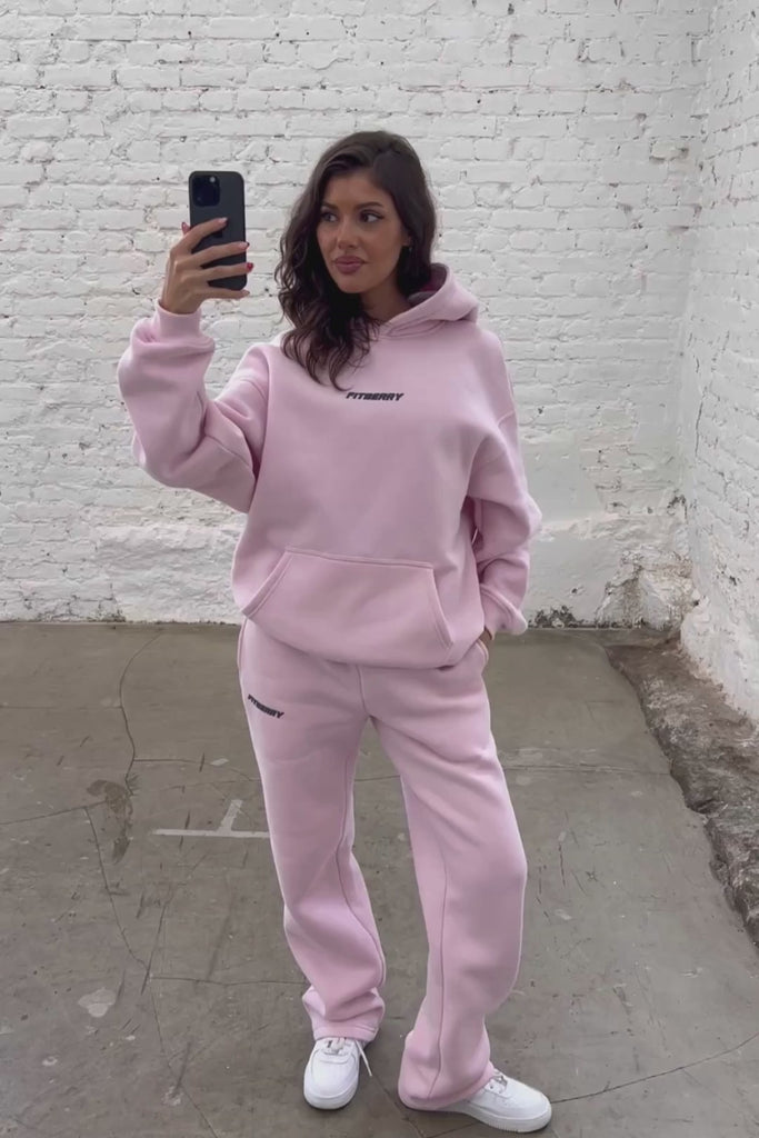 FITBERRY® SPORTS CLUB STRAIGHT LEG JOGGERS. Mid-waist joggers with straight leg and the perfect fit. Crafted from a premium high-quality cotton fabric. The straight joggers have soft fleece interior, deep pockets and a hidden adjustable drawstring waist. Featuring our Fitberry Sports Club print to front.