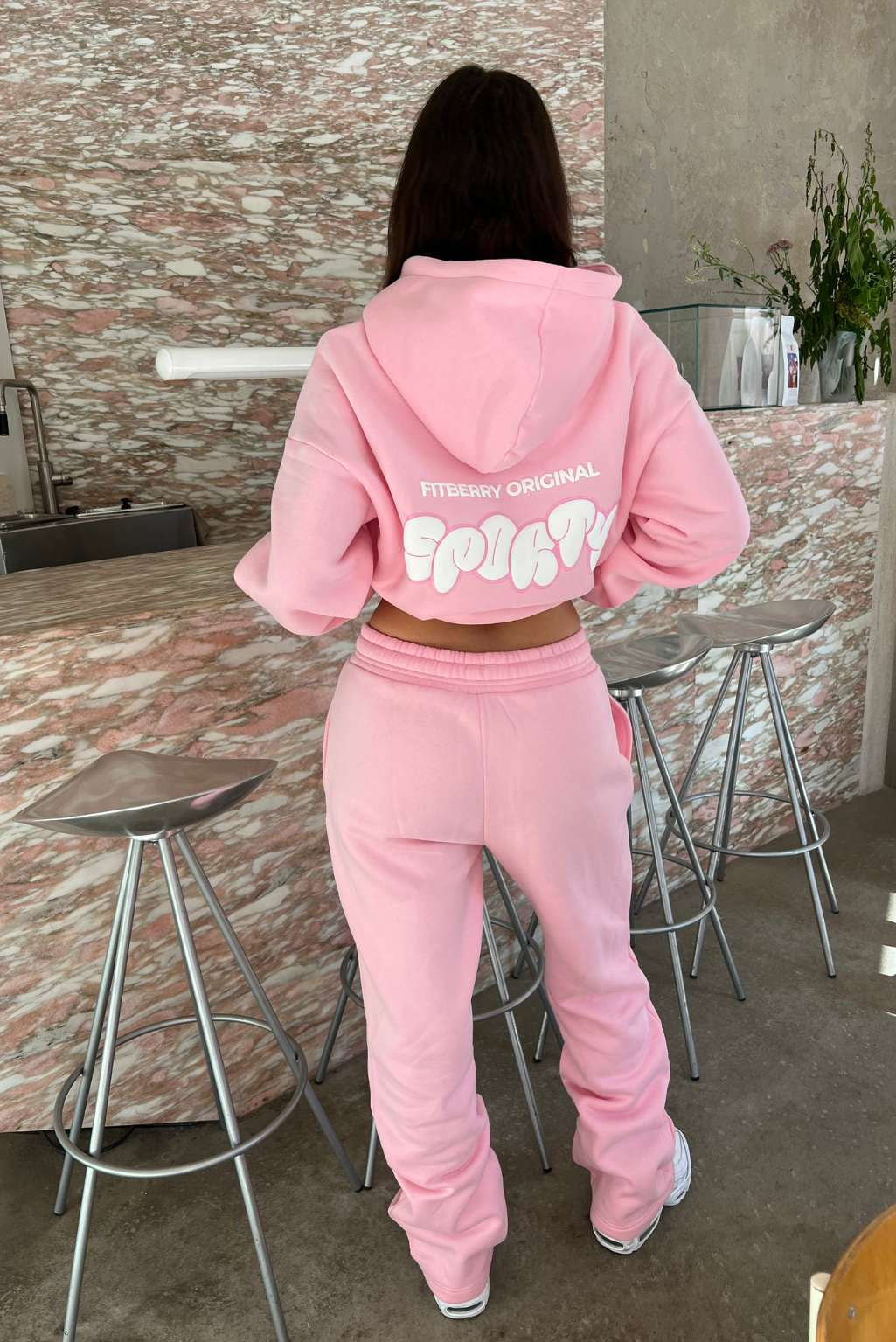 FITBERRY® SPORTY FLARED JOGGERS. Mid-waist joggers with flared leg and the perfect fit. Crafted from a premium high-quality cotton fabric. The flared joggers have soft fleece interior, deep pockets and a hidden adjustable drawstring waist.