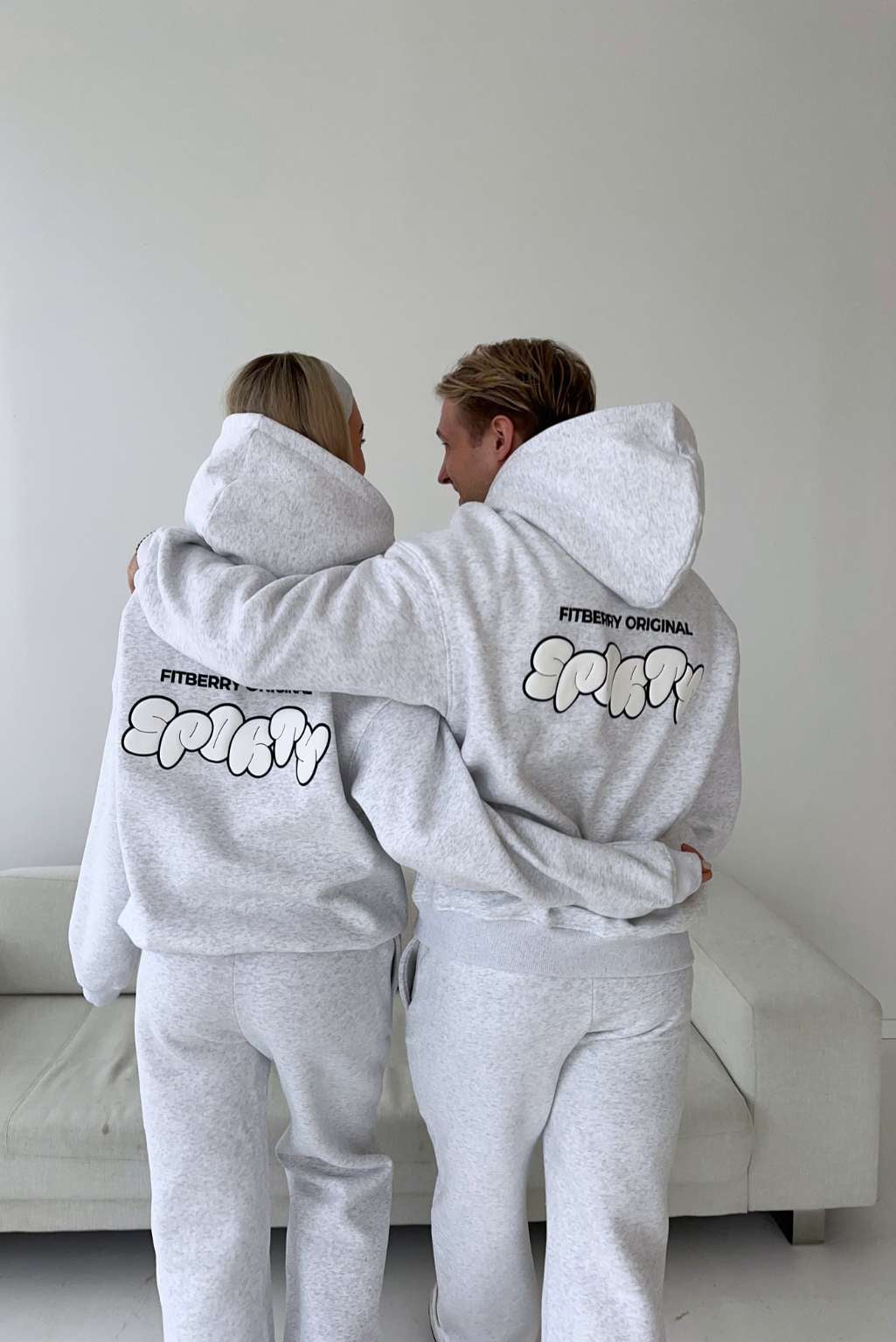 FITBERRY® SPORTY OVERSIZED HOODIE. An oversized hoodie crafted from premium high-quality cotton fabric. The hoodie has a soft fleece interior, dropped shoulders, a cozy hood, front pocket and ribbed details on the sleeves and waist. Featuring Fitberry Sporty print to front and back.