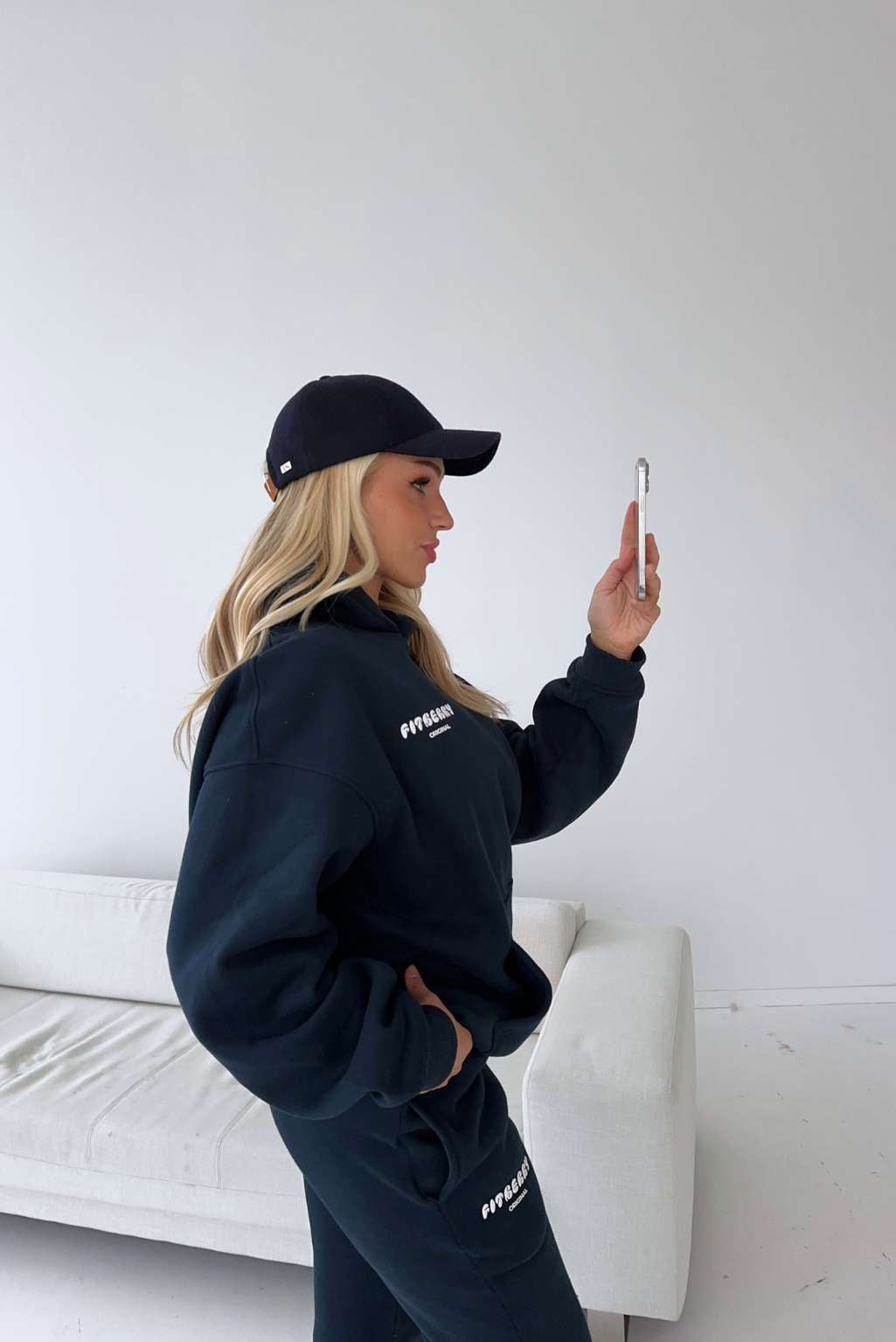 FITBERRY® SPORTY OVERSIZED HOODIE. An oversized hoodie crafted from premium high-quality cotton fabric. The hoodie has a soft fleece interior, dropped shoulders, a cozy hood, front pocket and ribbed details on the sleeves and waist. Featuring Fitberry Sporty print to front and back.