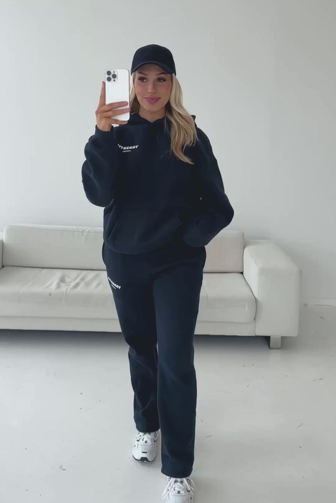 Model 1: Malin is 175cm and wears a size M in both hoodie and joggers.