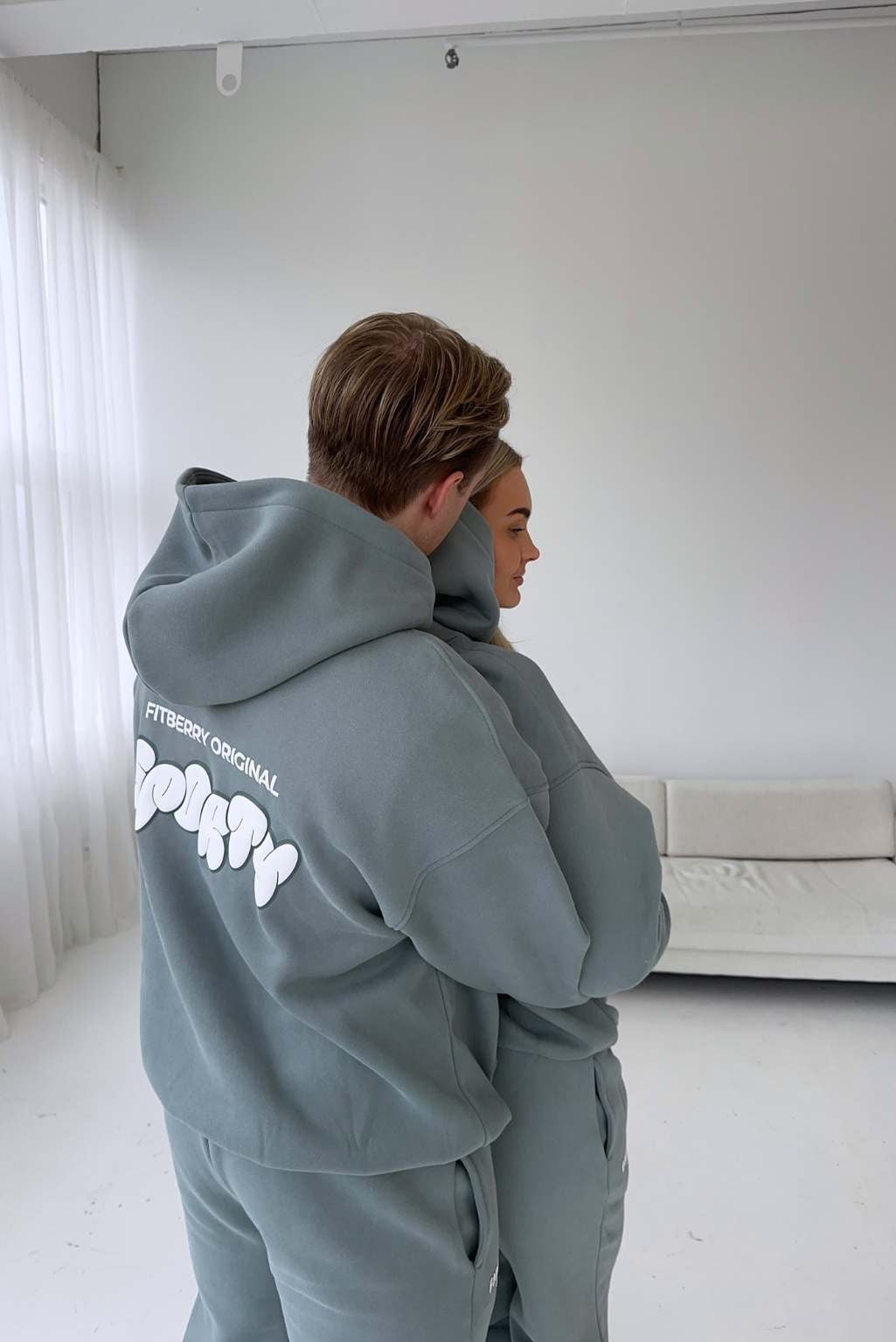 FITBERRY® SPORTY OVERSIZED HOODIE. An oversized hoodie crafted from premium high-quality cotton fabric. The hoodie has a soft fleece interior, dropped shoulders, a cozy hood, front pocket and ribbed details on the sleeves and waist. Featuring Fitberry Sporty print to front and back.