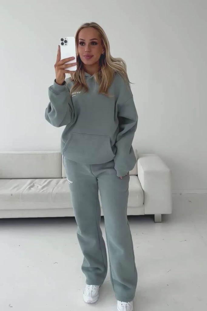Model 1: Malin is 175cm and wears a size M in both hoodie and joggers.
