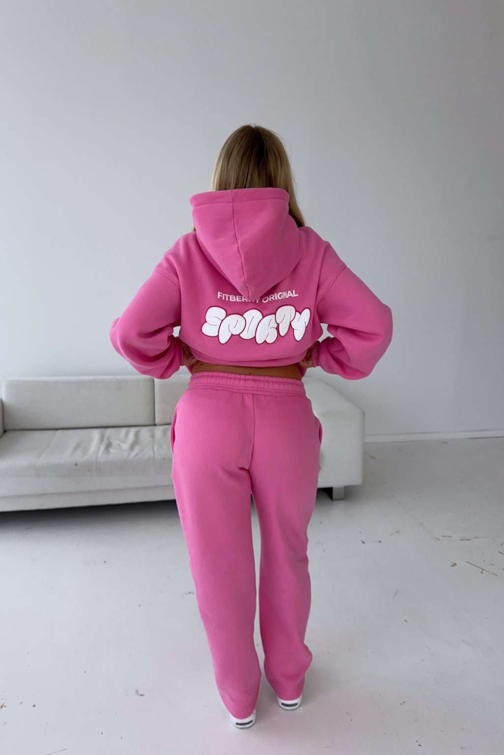 FITBERRY® SPORTY OVERSIZED HOODIE. An oversized hoodie crafted from premium high-quality cotton fabric. The hoodie has a soft fleece interior, dropped shoulders, a cozy hood, front pocket and ribbed details on the sleeves and waist. Featuring Fitberry Sporty print to front and back.