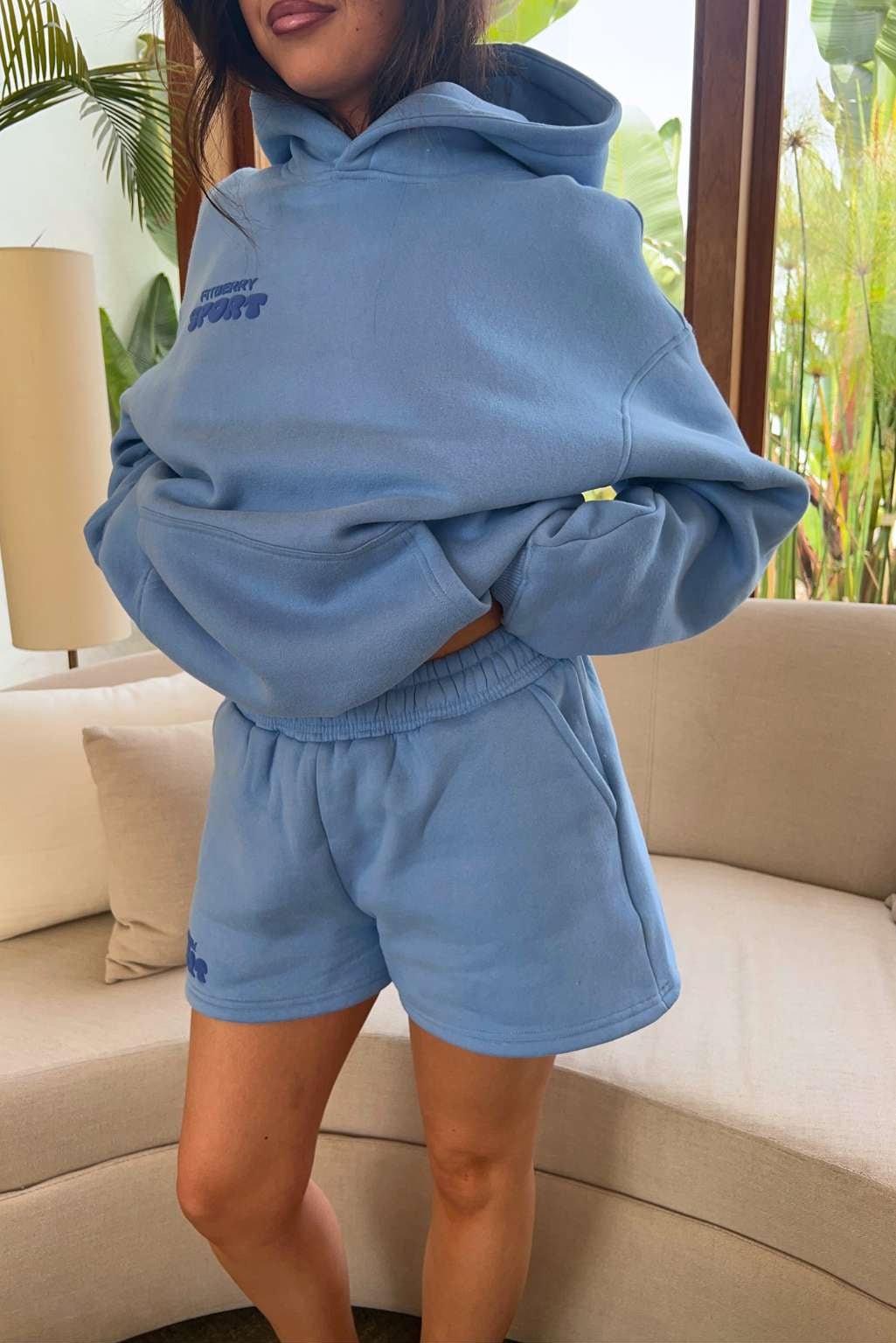FITBERRY® SUMMER EDITION SHORTS. Shorts with a relaxed and slightly oversized fit crafted from a premium high-quality cotton fabric. The shorts feature a soft fleece interior, deep side pockets and a hidden adjustable drawstring. Featuring Fitberry Summer Edition print to front.