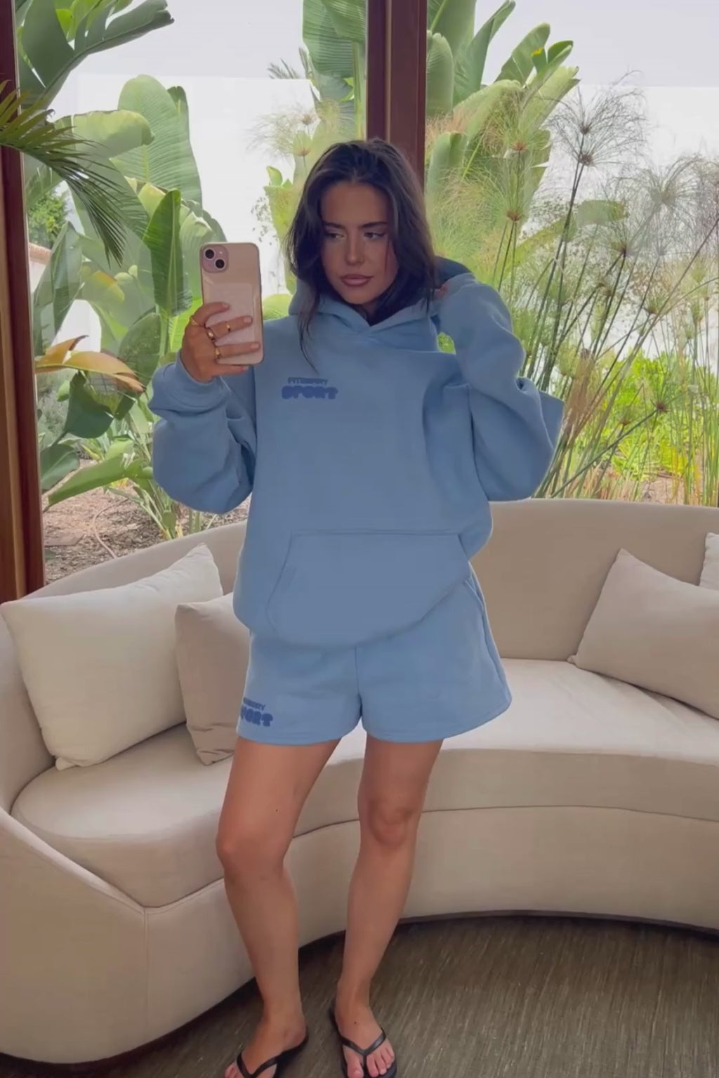 Model 2: Hanna is 160cm and wears a size S in hoodie and size XS in joggers / shorts.