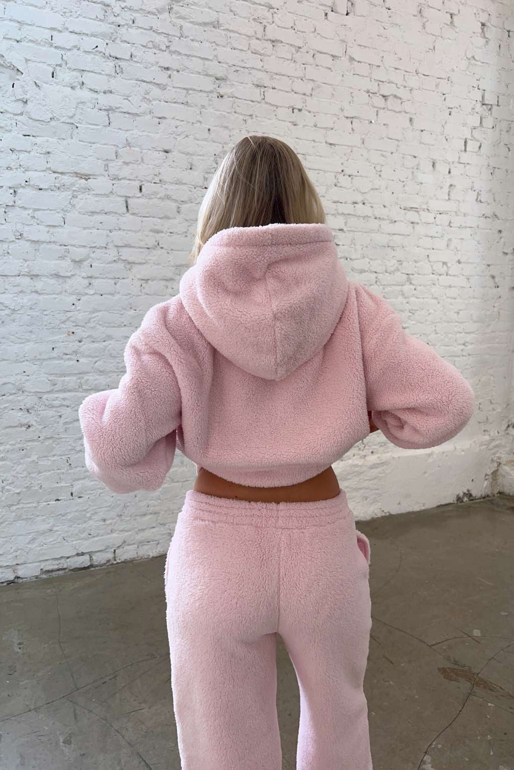 FITBERRY® SNOW BUNNY OVERSIZED HOODIE. An oversized hoodie crafted from a buttery soft teddy fleece fabric. The hoodie has a soft fleece interior, dropped shoulders, a big cozy hood and Fitberry embroidery logo to front.