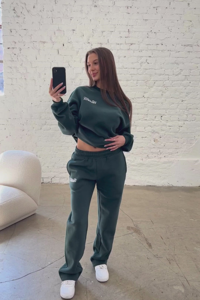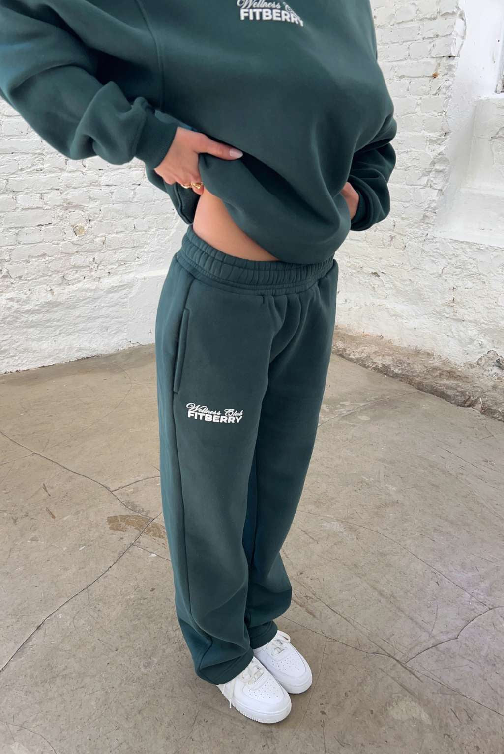 FITBERRY® WELLNESS CLUB STRAIGHT LEG JOGGERS. Mid-waist joggers with straight leg and the perfect fit. Crafted from a premium high-quality cotton fabric. The straight joggers have soft fleece interior, deep pockets and a hidden adjustable drawstring waist. Featuring our FITBERRY® WELLNESS CLUB print to front.