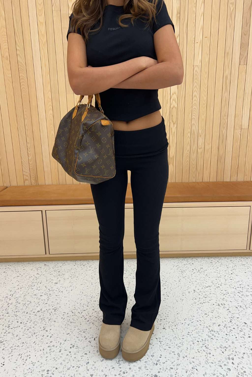 Model 3: Mariam is 170cm and wears a size XS in both yoga pants and tee.